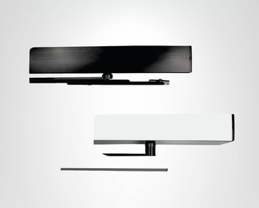 Sistemas peatonales batientes. Su controlador y transformador están integrados para optimizar el espacio y garantizar un funcionamiento silencioso y eficiente.